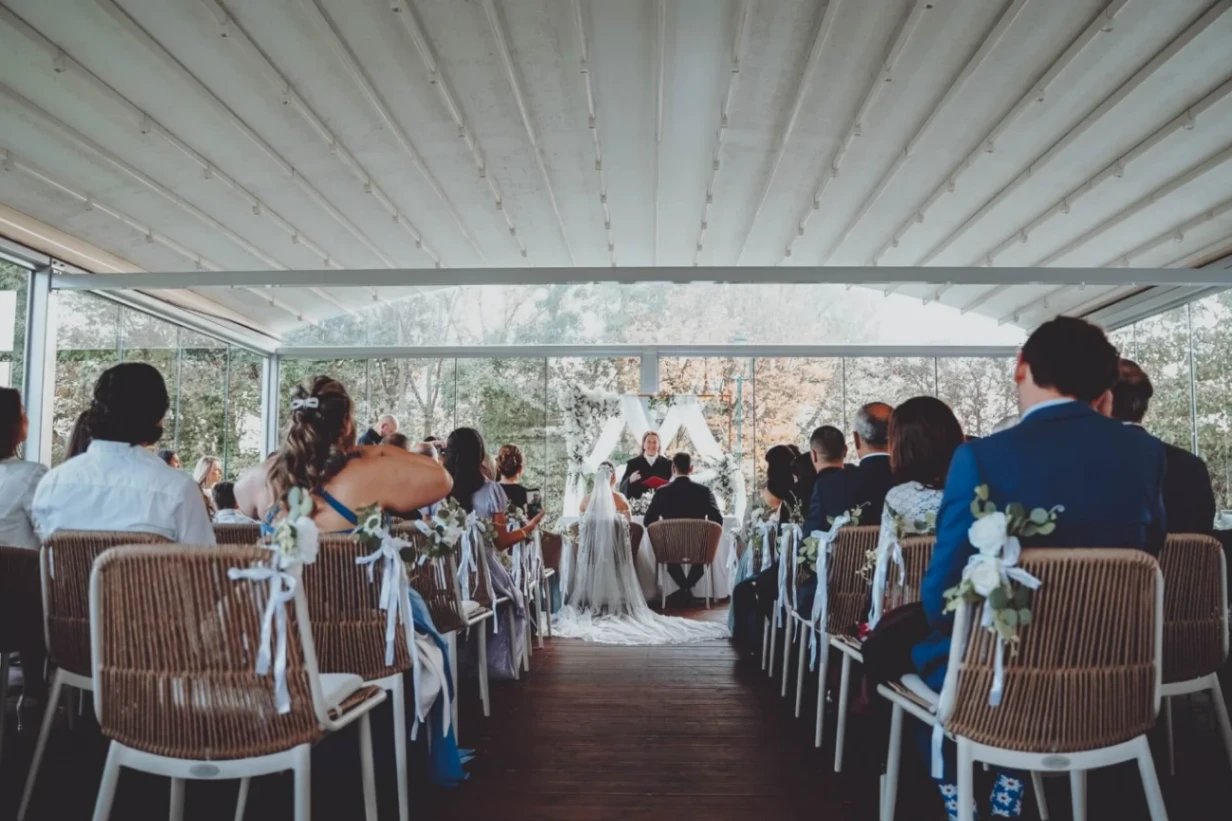 Wetterfest zu jedem Zeitpunkt. Wir gestalten unseren Zeremoniensaal nach Euren Wünschen und Vorstellungen. - bis zu 120 Personen