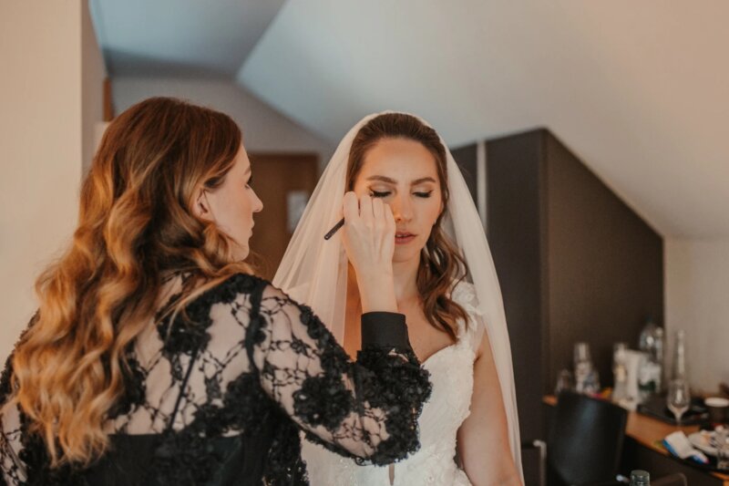 Die Qualität der verwendeten Produkte spielt eine entscheidende Rolle. Damit euer Hochzeits Make-up den ganzen Tag über hält, solltet ihr in hochwertige, wasserfeste und lang anhaltende Make-up-Produkte investieren. Beachtet auch die verschiedenen Lichtverhältnisse, die es während der Hochzeit geben wird, und wählt Produkte, die unter unterschiedlichen Beleuchtungen gut aussehen. Besonders für Hochzeitsfotos, die in der Schweiz oft in den Bergen oder an Seen entstehen, wo das natürliche Licht sehr stark variieren kann.