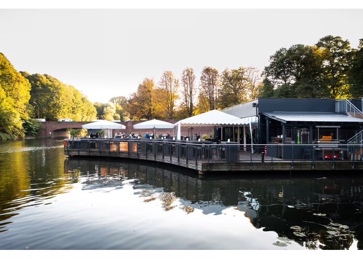 Die Bucht Hamburg ist eine gute Wahl, wenn ihr in der Stadt feiern wollt, aber trotzdem dieses besondere Gefühl sucht, das sonst oft nur Locations im Grünen hinbekommen. Dank der Lage direkt am Goldbekkanal habt ihr Wasserblick und könnt eure freie Trauung sogar direkt am Kanal planen. Drinnen wirkt die Location modern und klar, aber nicht kühl. Ihr könnt hier mit bis zu 120 Gästen feiern und essen. Apropos Essen: Die Bucht arbeitet mit hausinternem Catering, bietet auch vegane Optionen und setzt auf Live Cooking als Erlebnis für eure Gäste. Ein Brautpaar fasst die Erfahrung so zusammen: