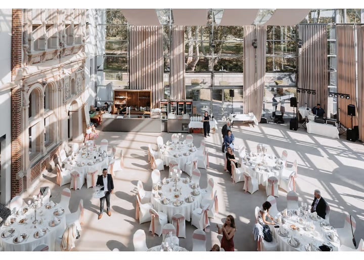 Die Location selbst wirkt modern und gleichzeitig gemütlich, ohne überladen zu sein. Praktisch ist außerdem, dass ein Teil eurer engsten Gäste direkt vor Ort übernachten kann, etwa Trauzeugen oder Familie.