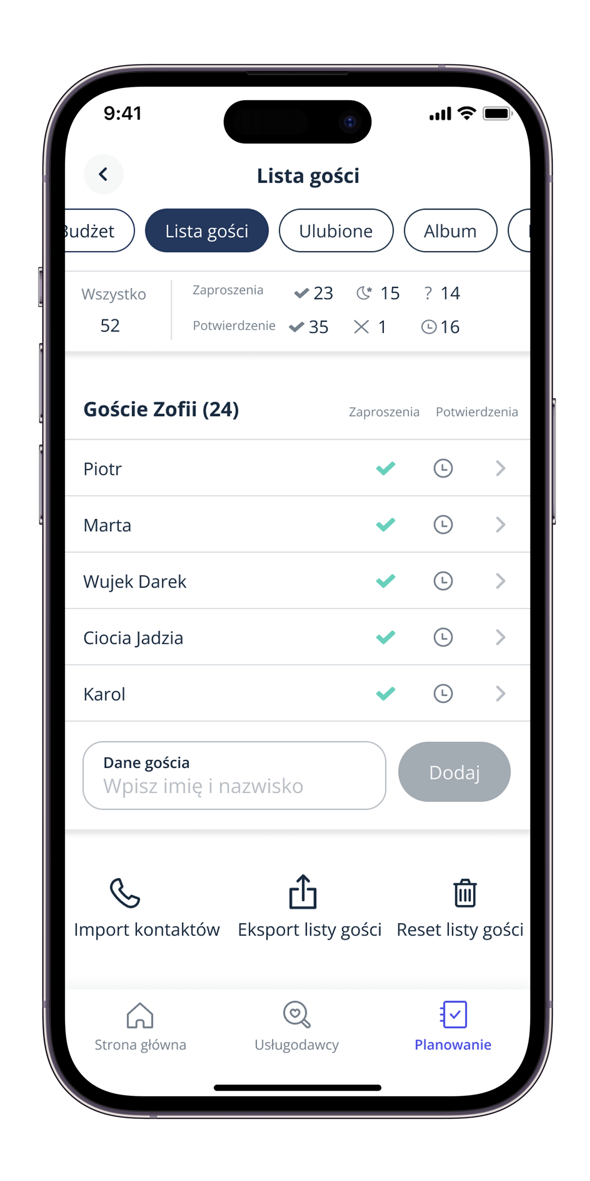 Czy można zarządzać potwierdzeniami obecności z poziomu listy gości?