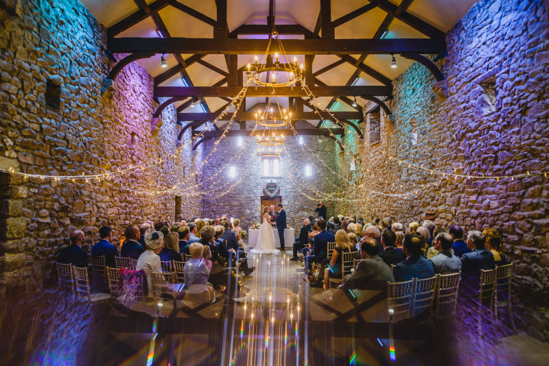 The Old Grammar School is a beautiful, historic barn-like venue built from stone and oak. Only 10 minutes from Manchester city centre yet set in a secluded setting by a stream. Every wedding reception includes exclusive hire of the venue. For every wedding reception, absolutely everything is brought to the venue and set-up from scratch (the bar, kitchen, tables and chairs etc) enabling every wedding reception to be as unique as possible but without the big price tag. All of our menus etc are quoted specifically for each customer based on their number of guests enabling our customers to build their own package.