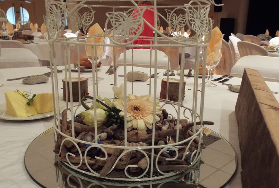 Local centre pieces made from driftwood from the beach 5 minutes away.