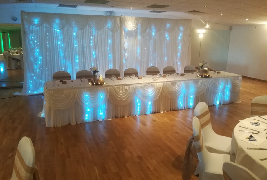 The Chart room has its own private bar and is ideal for weddings needing to seat up to approx. 150. If you have a large Wedding Party our Ballroom is the one for you! Able to cater for up to 350 people, including its own private bar, stage, dance floor and sound/lighting system. We can help you to create the Food and Drink Packages, Entertainment, Venue dressing and even supply Event Angels to makes sure everything goes exactly as it should on your big day. (right on the night!) We can provide everything from your basics such as chair covers and sashes to match your colour theme, right up to your centre pieces, wall decorations and starlight backdrops.